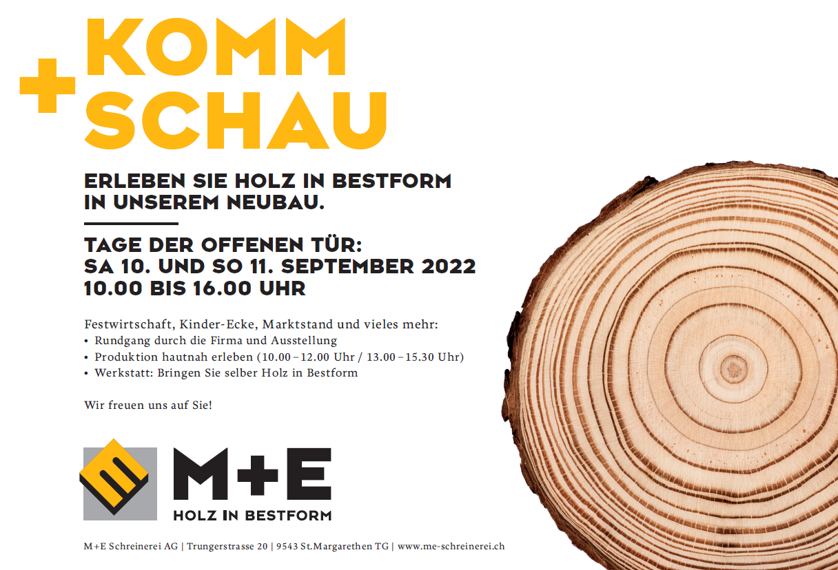 Kommt vorbei! Kommt + Schaut – erhaltet Einblick in den Schreineralltag, seht euch den Neubau an und führt interessante Gespräche. 2022-10-14T09:15:14+02:0022. August 2022|