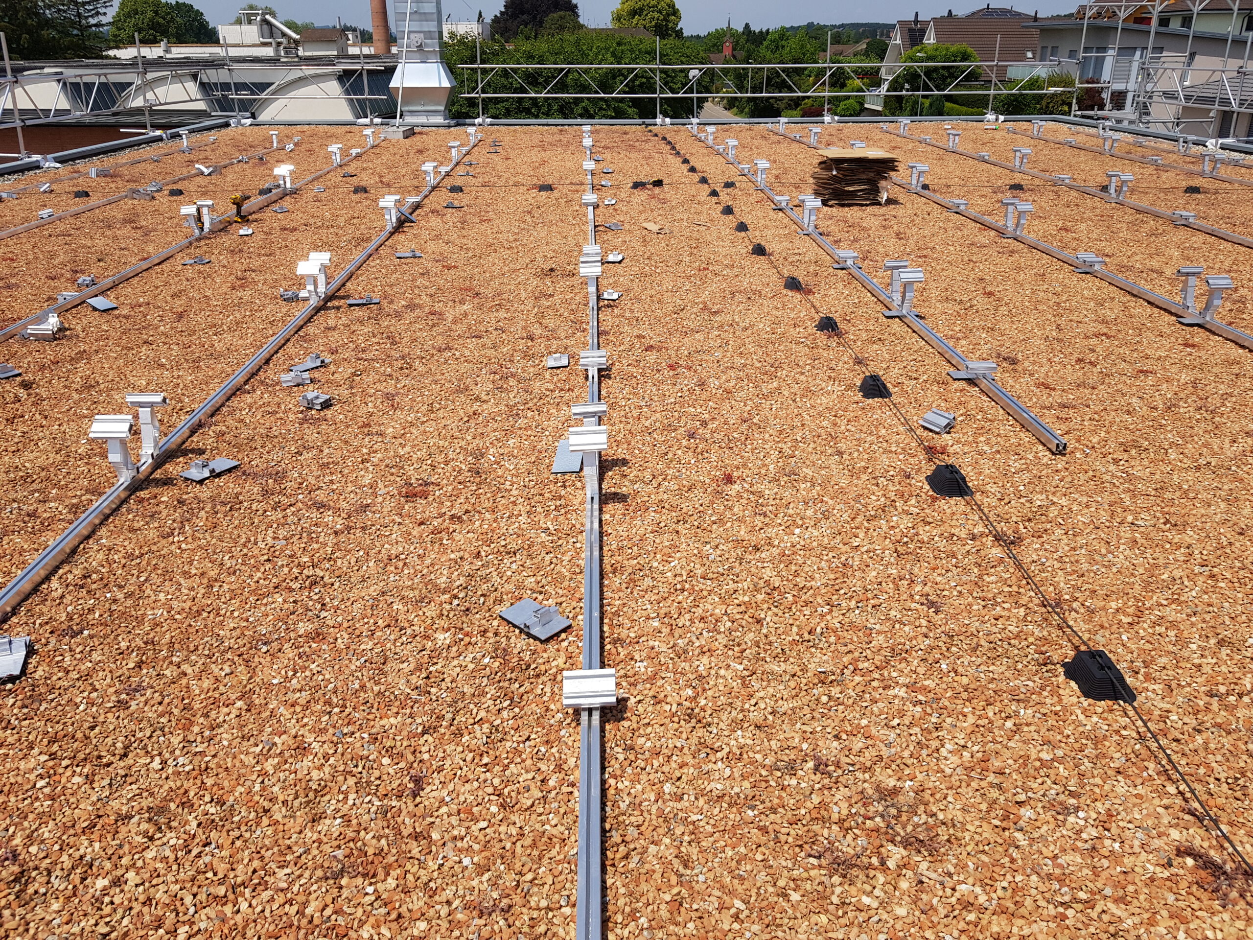 Start Montage Photovoltaik-Anlage ENERGIE + SPARENDie Montage der Unterkonstruktionen für die Photovoltaik-Anlage mit einer Fläche von 1322 m2 ist in vollem Gange. Wir freuen uns, bald unseren «eigenen» Strom zu produzieren. 2024-02-13T18:05:13+01:0022. Juni 2023|