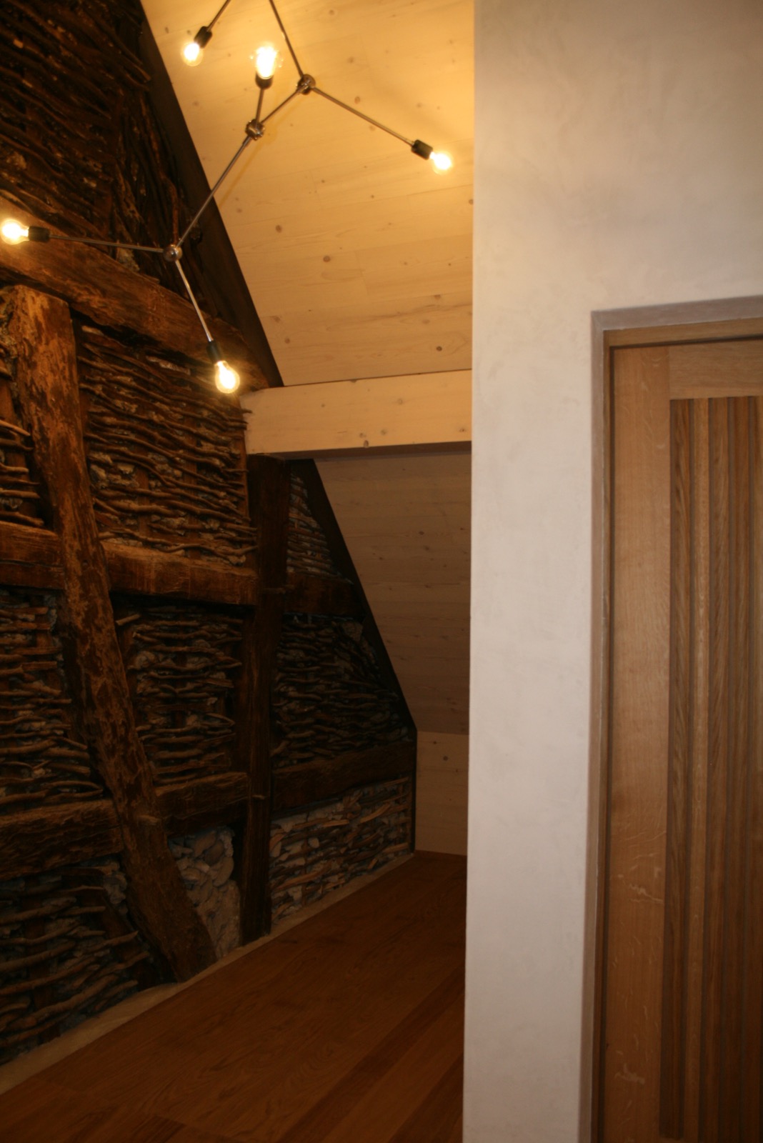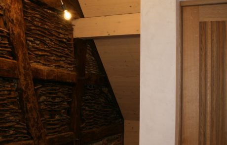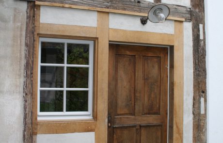 Fünfgeschossiges Fachwerkgebäude mit Restaurant und Hotel